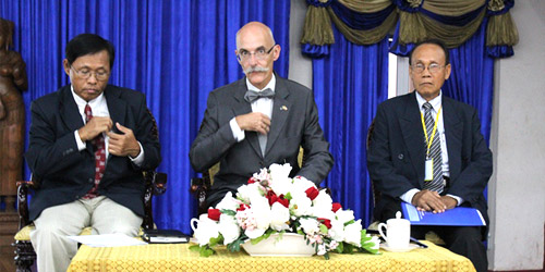 In order to expand students’ knowledge of the European Union (EU), PUC was very honored and privileged on May 7, 2013 to host the Ambassador of the European Union to the Kingdom of Cambodia, H.E Jean-Francois Cautain for a visit and talk. at Srey Dim Conference Hall, on the PUC South Campus.