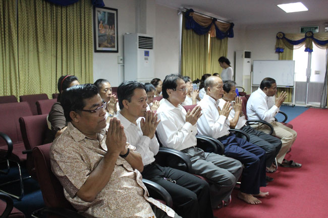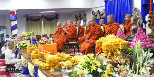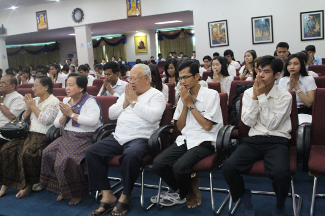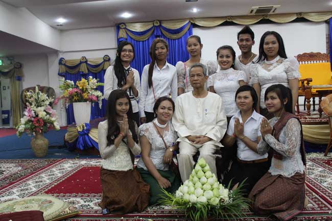 Last Saturday October 19th, 2013, PUC founding father, Ubāsaka Kol Pheng and Ubāsikā Kol Kim Phalla together with PUC management team, professors, staffs, and students decided to celebrate Kathina dana to monks living in Damma Vina Yārāma pagoda, called Wat Thmey, located in Snoar Commune, Prei Ka Bas District, Takeo Province.