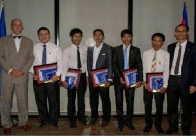 Two students from Paññāsāstra University of Cambodia namely Mr. Leav Kimlay and Mr. Yann Aoudourm were awarded with golden and motivational prizes respectively, from the European Commission Essay Competition on “The Mekong as a Force of Development in Cambodia: Challenges and Opportunities”. The contestants were from 17 universities and study institutions in Cambodia.