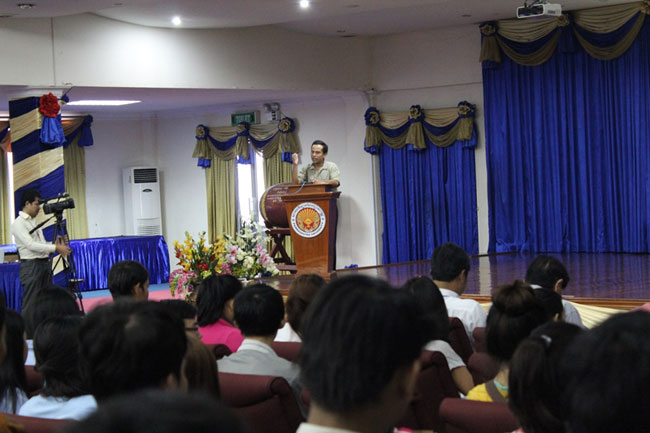 “Violence against women is not just done within 16 days. It needs more time and effort to make it happen and the choice to end violence against women starts with you, me and all of us,” said ProfessorKiengRotana, Vice President of Student Affairs.