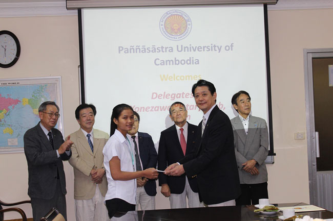Four PUC students received scholarship grants of $300USD from the Japanese Yonezawa Rotary Club (JYR). They are: Sourng Sythorn, majoring in TESOL; Sien Kong Rathana, majoring in Computer Science; Nov Synoeun, Majoring in Media; and Venerable Mang Chet, Majoring in Political Science.