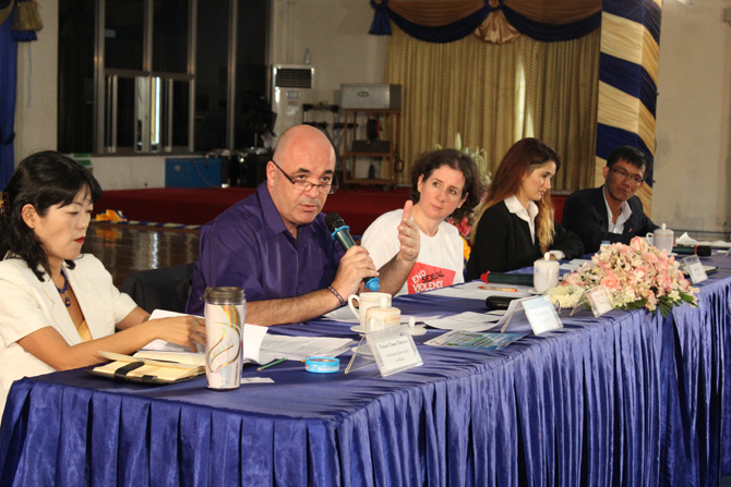 In support of the global summit, the UN hosted a series of events around the world, including this one at PUC, to shine a spotlight on the issue of sexual violence in conflict and to encourage debate on the issue. The event, which was open to the public, included a number of distinguish panelists who shared their perspectives on the particular lesson that Cambodia has to offer. They were Professor Kasumi, lecturer of Gender Study; Mr. Alastair Hilton, founding member of First Step Cambodia; Ms. Sherin Shefik, Foreign Office Legal Directorate; and Mr. Tong Soprach, freelance consultant and social affairs columnist for the Phnom Penh Post.
