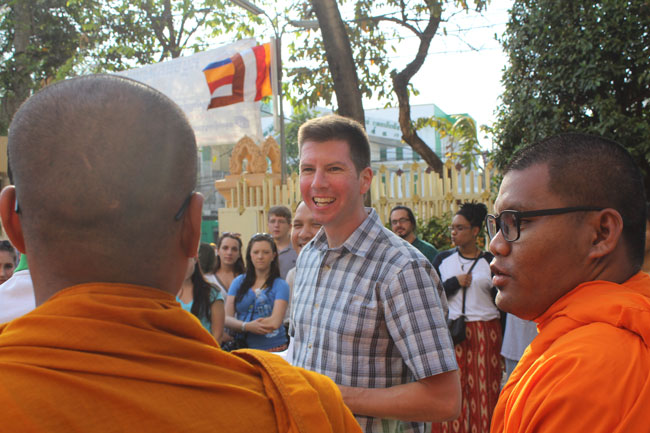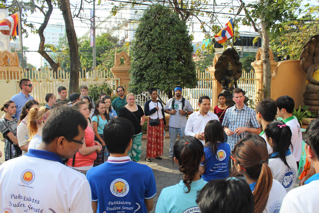 A group of 22 students and two professors from Bridgewater State University (BSU) in Bridgewater, Massachusetts, USA, visited Paññāsāstra University of Cambodia (PUC) to discuss and work with PUC students in a three weeks project on the topics of Water Sanitation and Empowering Youth run by Dr. Srey Sun Leang.