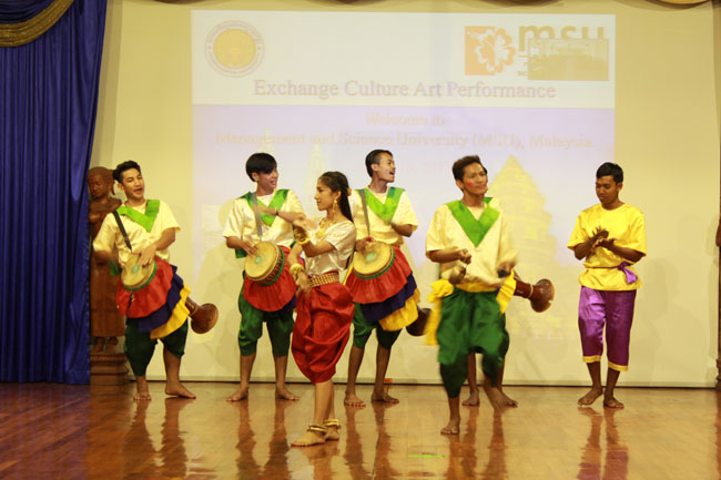 Almost sixty students from Management and Science University (MSU), Malaysia visited Paññāsāstra University of Cambodia (PUC) this morning to share culture between the two countries.